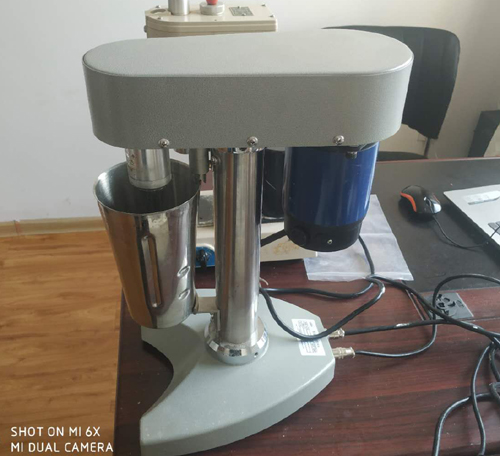 3.將攪拌桶固定在攪拌器上,調整攪拌器轉速到1000r/min,啟動攪拌器連續攪拌20分鐘。